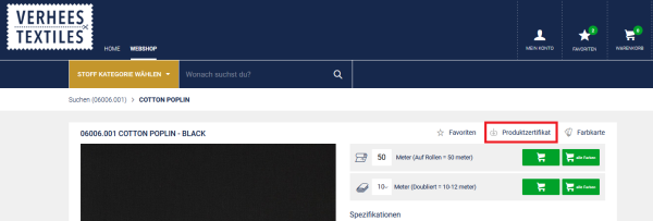 Für alle Artikel in unserem Sortiment bieten wir ein Produktzertifikat an. Hier finden Sie die wichtigsten Informationen über die Zusammensetzung, Waschanleitung und Zertifizierung. Sie können diese Zertifikate herunterladen, sobald Sie den Artikel ausgewählt haben.