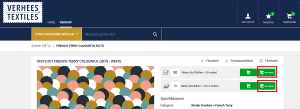 Haben Sie Interesse an allen Farben unseres einfarbigen GOTS-Jerseys? Oder möchten Sie alle Farben dieses einen tollen Designs bestellen? Wählen Sie den Artikel, den Sie bestellen möchten. Rechts neben dem Produktfoto finden Sie nun eine Option mit Direktbestellung (Dubliert oder Rolle) neben dem Button mit Direktbestellung in allen Farben (sowohl Dubliert als auch auf Rolle erhältlich). Das spart eine Menge Zeit!
